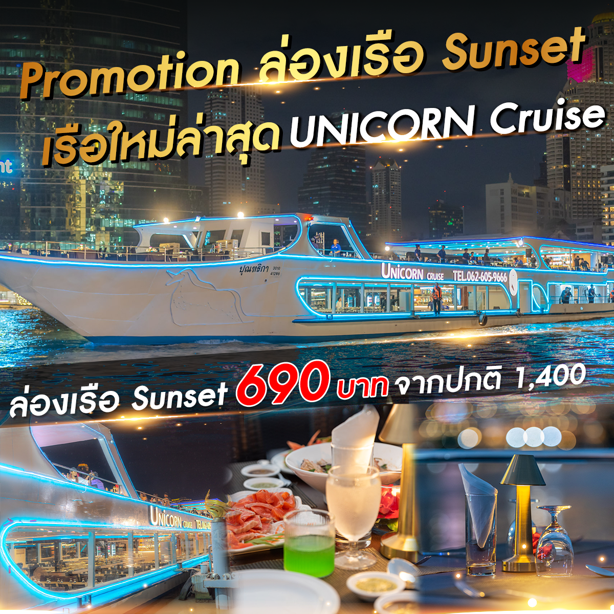 เพิ่มเติม2-KR짜오프라야강의 밤 분위기 속에서 럭셔리 크루즈, 유니콘 크루즈를 타고 특별한 경험을 경험해 보시기 바랍니다. 하늘의 도시만큼 아름다운 곳