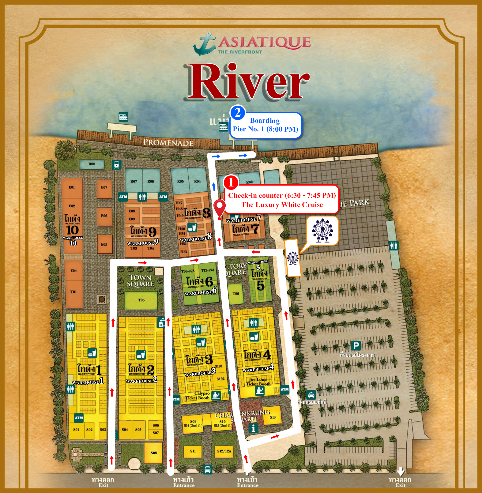 • จุดเช็คอิน-EngASIATIQUE The Riverfront (Check-in point, walkway between Warehouse 7 and Warehouse 8)